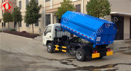 鉤臂垃圾車是在載貨汽車底盤基礎上加裝垃圾廂鉤臂系列傾翻機構(gòu)的專用裝置和垃圾箱組成。